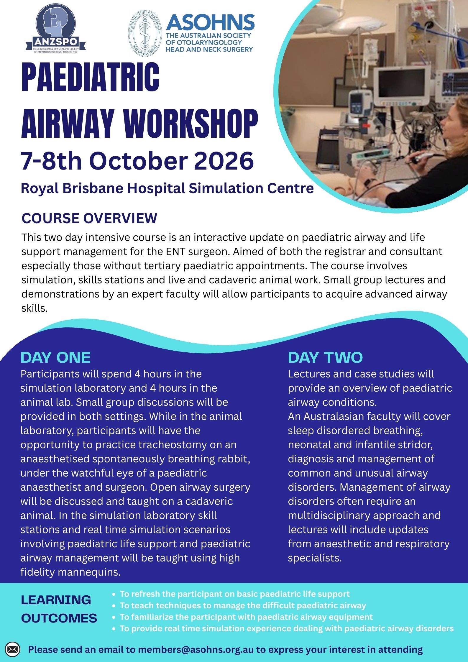To express your interesting in attending, please send an email to members@asohns.org.au